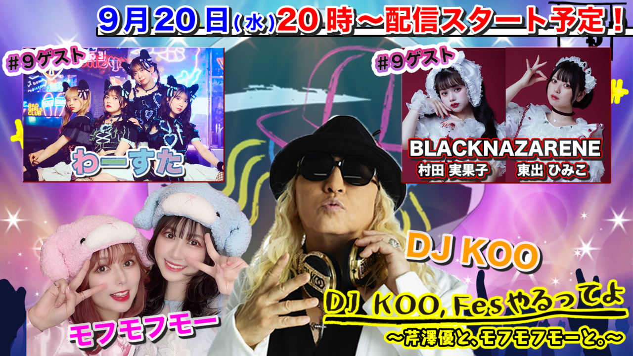 9/20(水)ニコニコチャンネルプラス「DJKOO、Fesやるってよ」生配信に村田実果子・東出ひみこ出演決定!